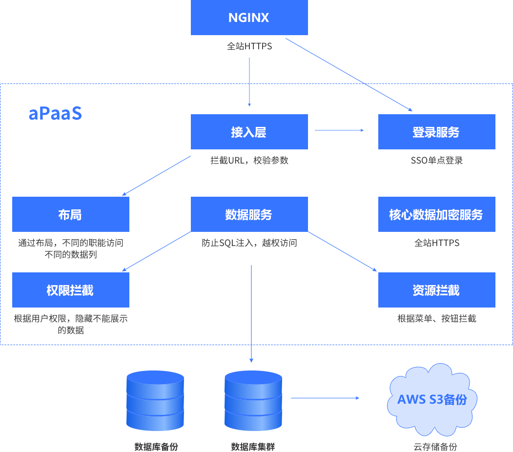 备注::平台与业务分离,,,,开发运维只运维平台,,业务专家生成的元数据(表/字段/运行逻辑)+业务数据全部以碎片的方式存储在DB中,,技术人员无法解读,,,只有业务专家授权后才能导出元数据+业务数据