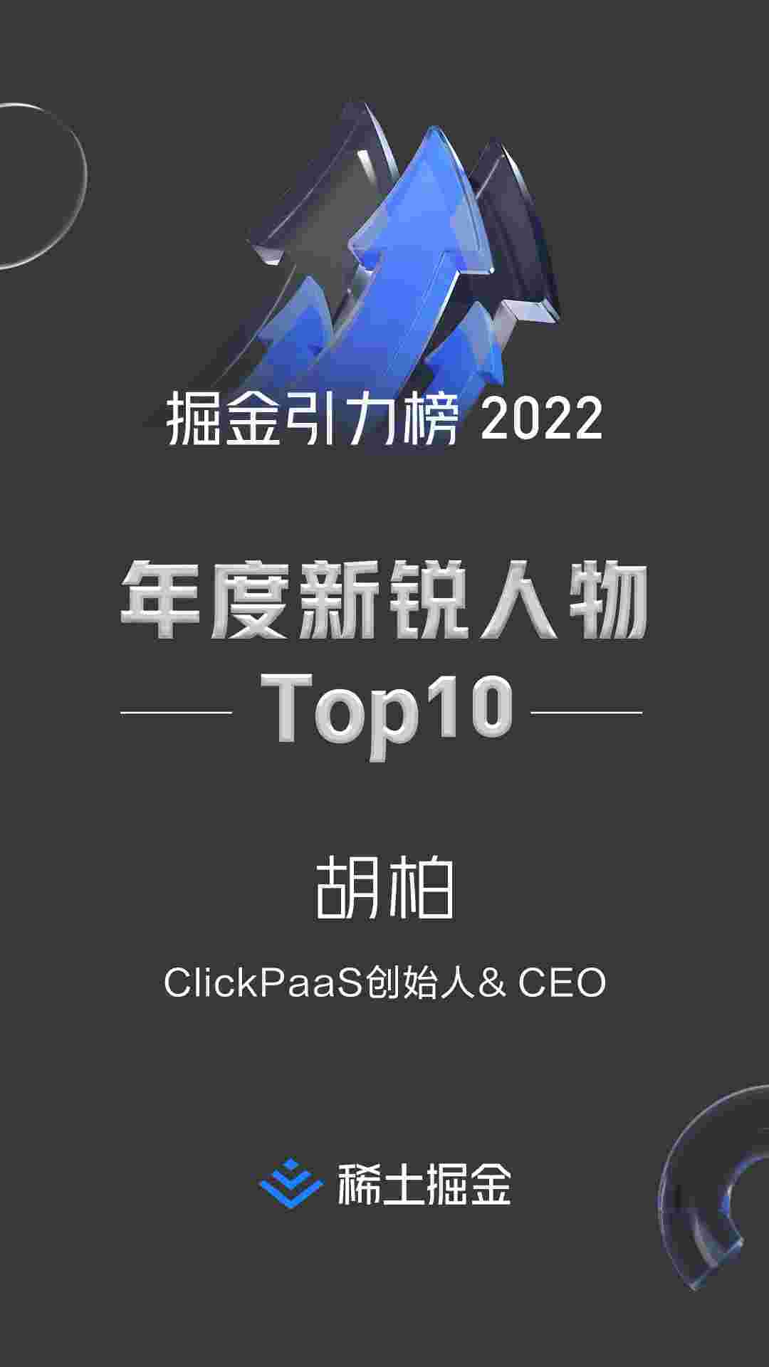 2022年1月6日,,,,稀土掘金社区第一届「掘金未来大会」成功举办,,会上发布了“2022 稀土掘金引力榜 年度新锐人物”榜单,,上海爱湃斯科技有限公司(简称圆梦钱包)创始人及CEO胡柏实力入选年度新锐人物TOP 10。。。。